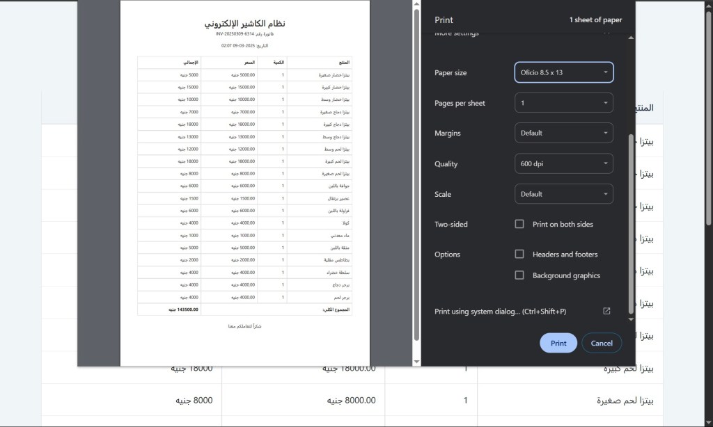 – طباعة الفواتير بتنسيق احترافي.