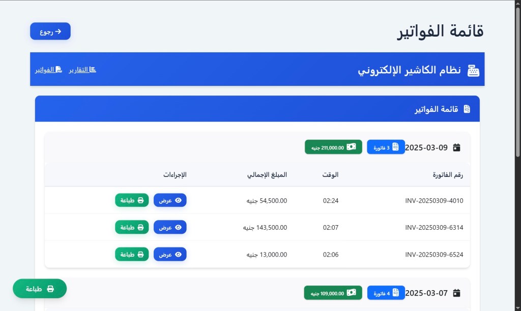 – طباعة نسخ من الفواتير السابقة عند الحاجة.