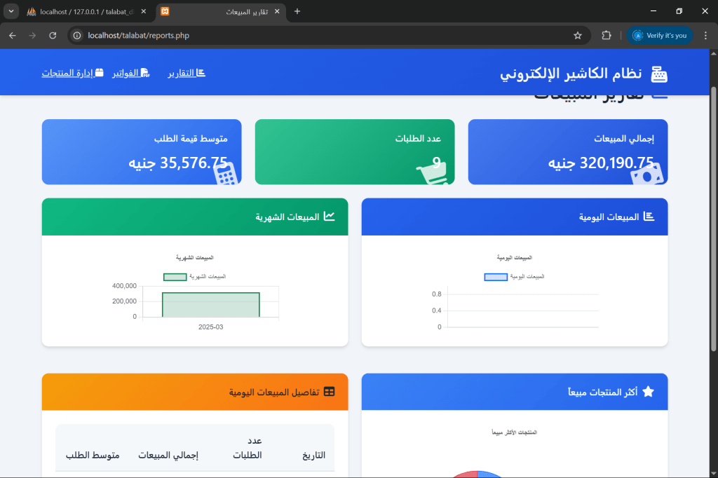 – تقارير يومية وشهرية للمبيعات.